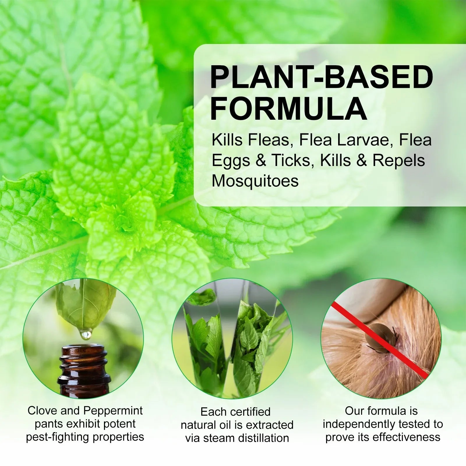 60ml Natural Pet Care Topical Flea&Tick Spray for Dogs&Cats with Fresh Fragrance Peppermint Oil and Eugenol