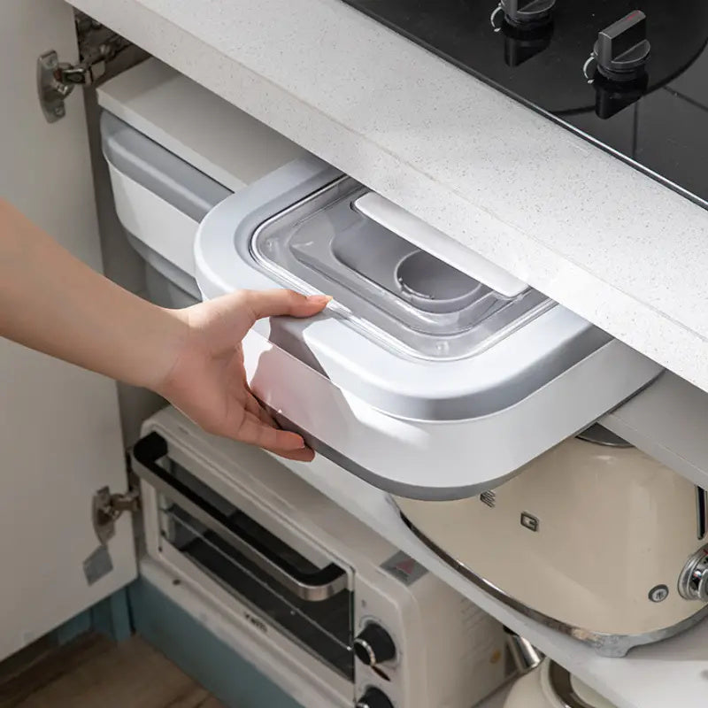 Our dog food container is designed to be easy to fold, making it very convenient for you to carry, move, or store. Folded and compact, it can be expanded to a maximum weight of 15 pounds during use.